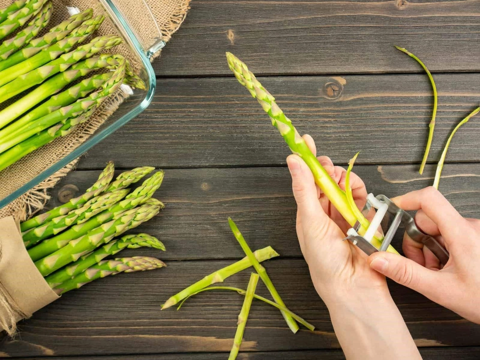 ⦁ Asparagus: Peel tough outer layer from thick spears